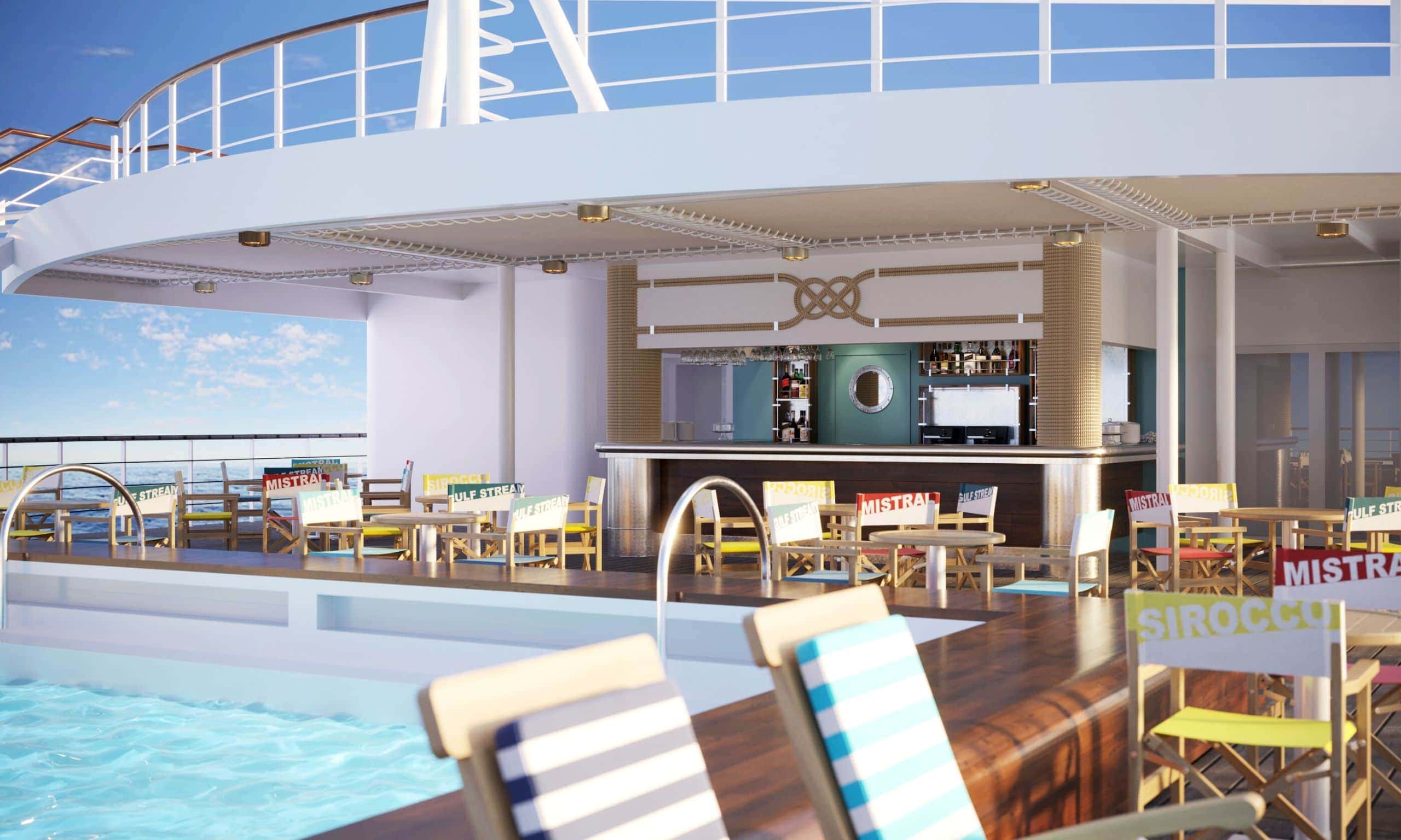 - 1,760 square meters of deck space with on-board pool
