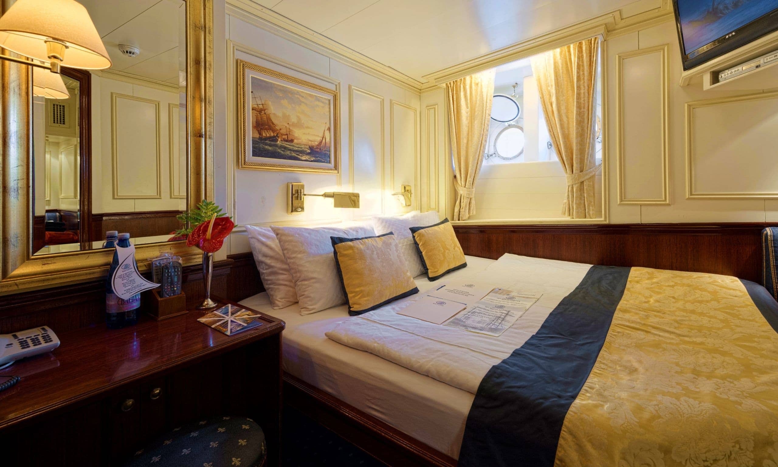 - 92 outside cabins, 14 deluxe cabins with private balcony and 2 luxurious owner’s suites