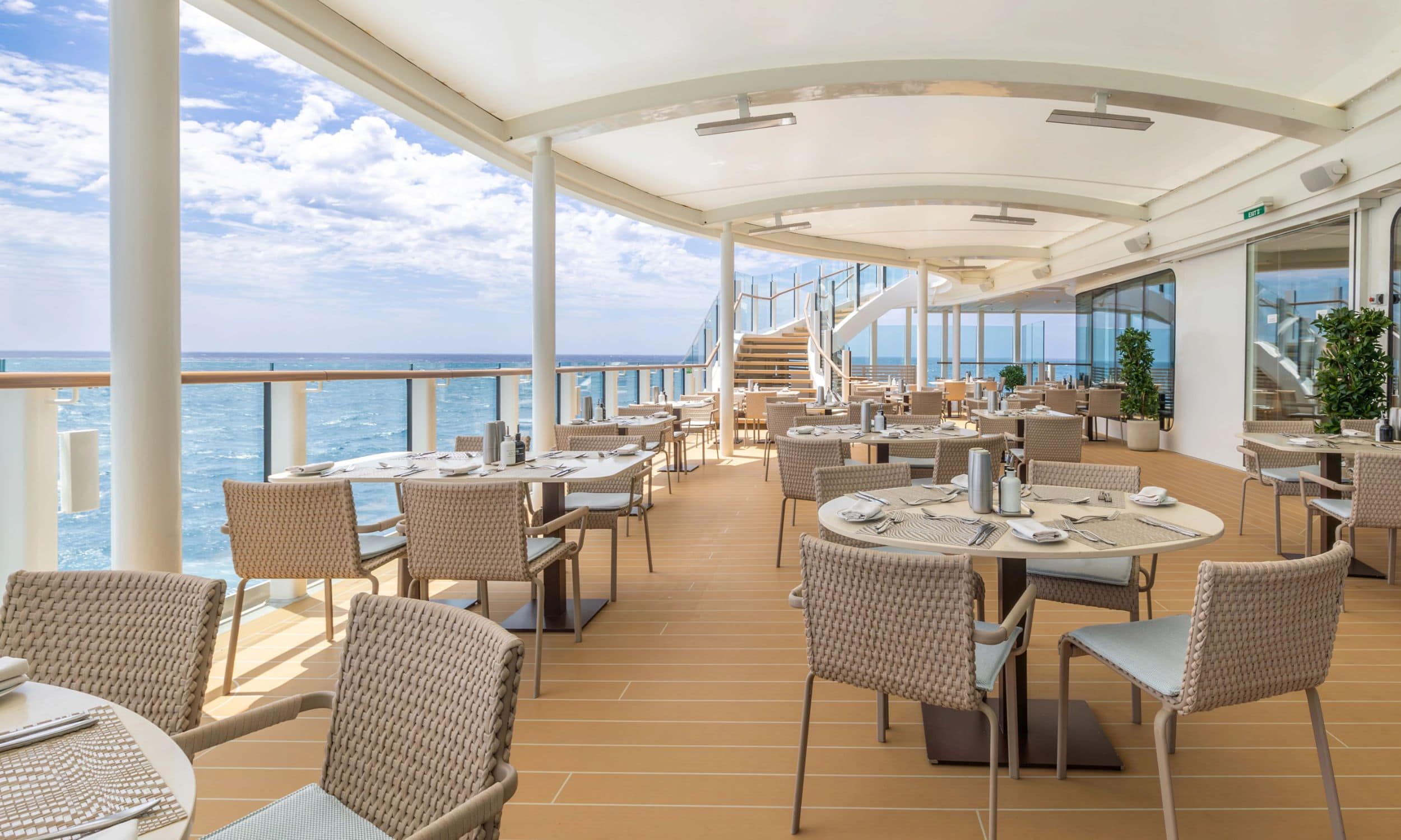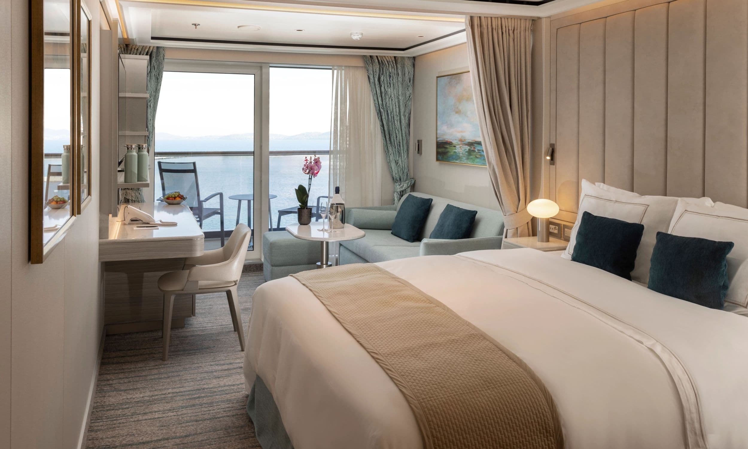 - Ocean views and private balconies in all suites – many with stunning 270° views